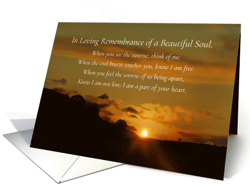 | Inside: | In loving remembrance of a beloved soul on the anniversary of their passing. They live on in our hearts and beautiful memories. |