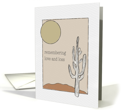 | Artist Notes: | When a friend or loved one has experienced a deep loss, remembering the anniversary of their loss is loving, kind and offers comfort. There is no time limit on grief neither is offering support and love. This simple and contemporary desert scene with a sketched cactus and sun convey a peaceful tone that will make the recipient feel thought about and cared for. Design by © Randi Perez Helm 2023 |