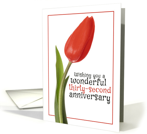| Artist Notes: | If you want to get specific when sending anniversary wishes, send this Happy Thirty-Second Anniversary design with blushing red tulip! |