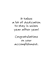 | Inside: | It takes a lot of dedication to stay in unison year after year! Congratulations on your accomplishment. |