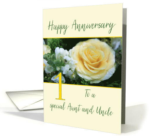 Aunt & Uncle 1st Wedding Anniversary Big Yellow Rose. Make their first anniversary unforgetable and send your aunt and uncle a romantic card. A big yellow rose in soft sunlight. Created in various different versions and years by Studio Porto Sabbia