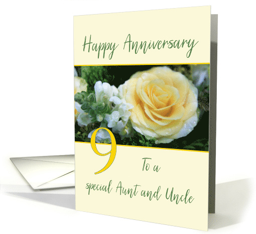 9th anniversary to Aunt and Uncle. Created from an original Studio Porto Sabbia photo! This Yellow Rose wedding anniversary card is available for many different specific years and for many specific family relations