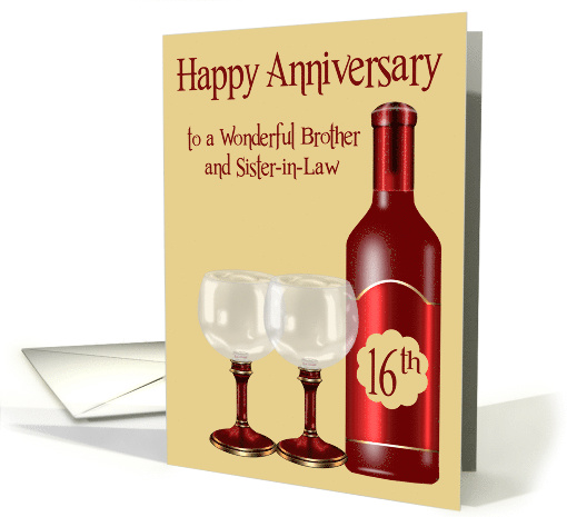 16th Wedding Anniversary to Brother and Sister-in-Law with Wine