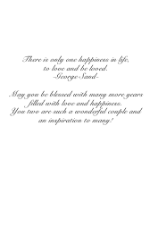 | Inside: | There is only one happiness in life, to love and be loved. -George Sand- May you be blessed with many more years filled with love and happiness. You two are such a wonderful couple and an inspiration to many! |
