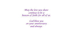 | Inside: | May the love you share continue to be a beacon of faith for all of us. God bless you on your anniversary and always. |