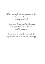 | Inside: | There is only one happiness in life, to love and be loved. -George Sand- May you be blessed with many more years filled with love and happiness. You two are such a wonderful couple and an inspiration to many! |