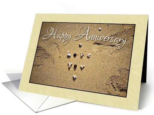 | Inside: | As time quickly passes, like sand sifting through my hand I'm so very thankful for the things on which I depend: like your love and commitment, you're my forever companion and best friend. So as the waves roll in and out of lives, I'll gladly write again and again, just how much much I love you and with you an eternity spend. Happy Anniversary! |