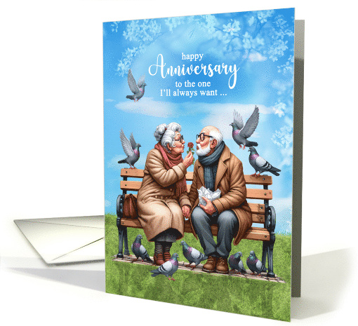| Artist Notes: | A sweet old couple sits on a park bench feeding the pigeons with the woman holding a rose for her husband on this adorable wedding anniversary card for either a husband or a wife. |