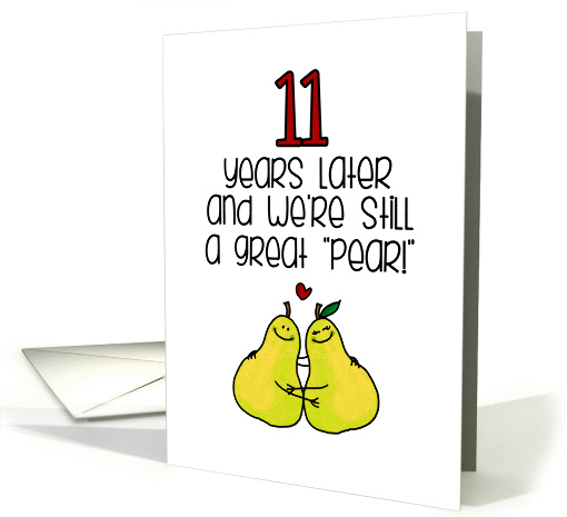 | Artist Notes: | Two kawaii (cute) pears in a loving embrace with the text "11 years later and we're still a great "Pear!" Great way for a husband or wife to say "Happy 11 Year Anniversary" to their better half. |