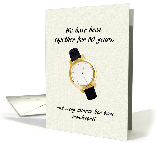 | Artist Notes: | 30th wedding anniversary card with a beautiful message. Tell your love that you have loved every minute together. A watch is ticking away the minutes, but they don't matter because you love being together. A very romantic anniversary card. |