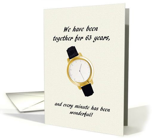 | Artist Notes: | 63rd wedding anniversary card with a beautiful message. Tell your love that you have loved every minute together. A watch is ticking away the minutes, but they don't matter because you love being together. A very romantic anniversary card. |