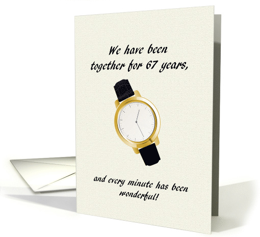 | Artist Notes: | 67th wedding anniversary card with a beautiful message. Tell your love that you have loved every minute together. A watch is ticking away the minutes, but they don't matter because you love being together. A very romantic anniversary card. |