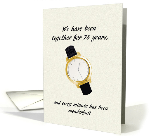 | Artist Notes: | 73rd wedding anniversary card with a beautiful message. Tell your love that you have loved every minute together. A watch is ticking away the minutes, but they don't matter because you love being together. A very romantic anniversary card. |