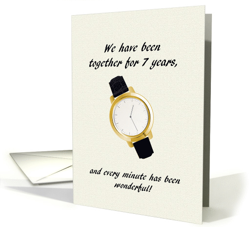 | Artist Notes: | 7th wedding anniversary card with a beautiful message. Tell your love that you have loved every minute together. A watch is ticking away the minutes, but they don't matter because you love being together. A very romantic anniversary card. |