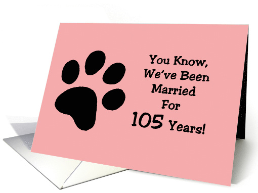 | Artist Notes: | Funny Fifteenth Anniversary Card for spouse, with a cartoon dog paw on a pink background. The words say: You know we've been married for 105 years! Inside says: In dog years! Happy Anniversary |