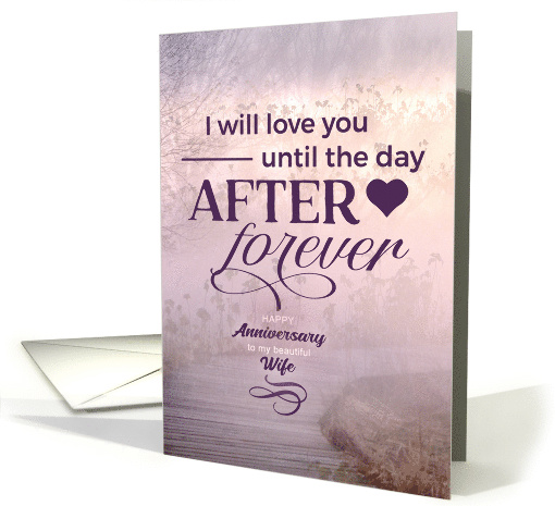 If you're looking for a romantic and feminine card for your wife on your wedding anniversary, this deep rose tinted and purple foggy path has a tender and beautiful message.
