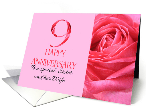 9th Anniversary to Sister and Wife Pink Rose Close Up