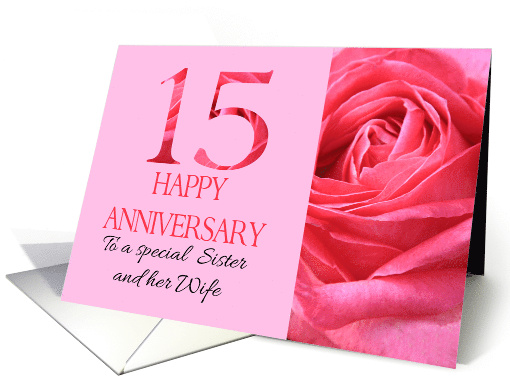 15th Anniversary to Sister and Wife Pink Rose Close Up