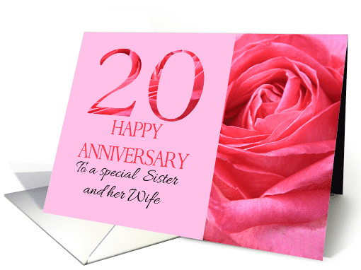 20th Anniversary to Sister and Wife Pink Rose Close Up