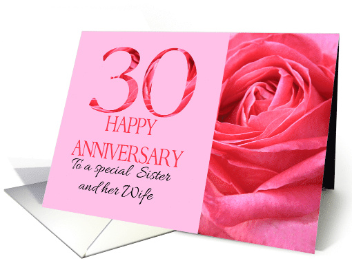 30th Anniversary to Sister and Wife Pink Rose Close Up