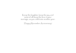 | Inside: | Keep the laughter, keep the joy, and most of all, keep the love in your marriage, as you celebrate another year. Happy November Anniversary! |