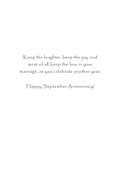 | Inside: | Keep the laughter, keep the joy, and most of all, keep the love in your marriage, as you celebrate another year. Happy September Anniversary! |