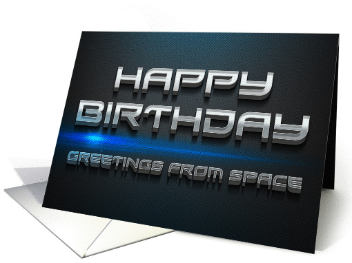 | Artist Notes: | Know someone who loves outer space? Why not send them this greeting card for their birthday? Font used depicts a science fiction or outer space feeling. Card has a black base color with criss-cross/mesh pattern. A blue laser-light effect separates the two texts. |