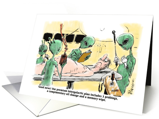 | Inside: | Welcome to the next level of aging! Side effects may include abductions, unexplained scars, and forgetting why you walked into a room. Happy other worldly birthday! |