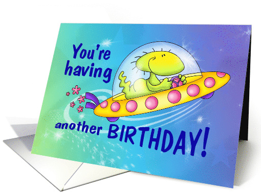 | Artist Notes: | Just imagine sending your best Birthday wishes along for the ride through a bright and cheery starry sky with this festively whimsical "space racing" character! |