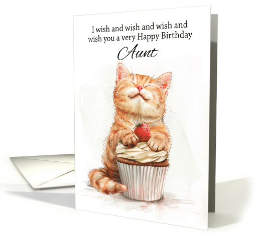 Aunt Birthday Cat Leaning on a Cupcake Sending Lots of Wishes