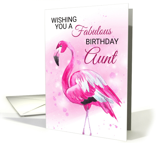 Wishing your Aunt a fabulous birthday, with a super hot pink painted flamingo on a blend and splatter background, trendy but timeless to wish that wonderful person a super duper kind of birthday.