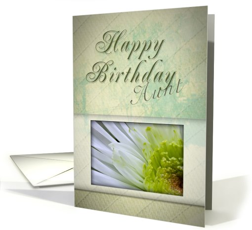 Aunt Happy Birthday, White and Green Flower
