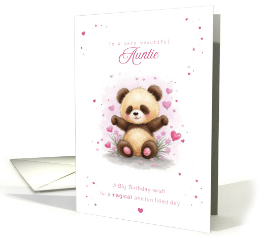 Auntie Birthday with Cute Panda and Pink Hearts
