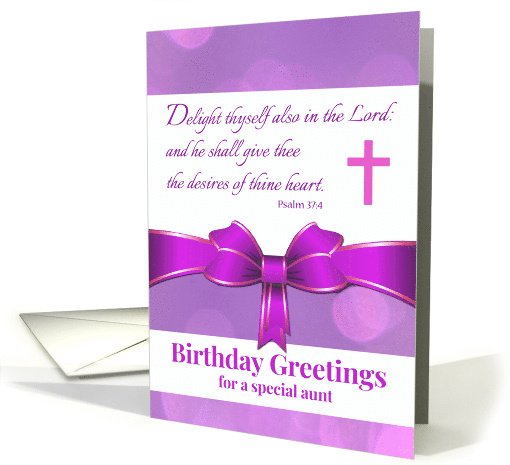 For Aunt Birthday with Psalm 37 4 Scripture in Purple with Bow