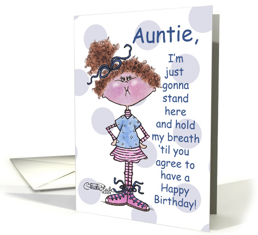 ©Christie Black. What is a good way to get your way, hold your breath of course. Fun little note for your Aunt or Auntie, to let her know you won't stand for her to NOT have a happy birthday.