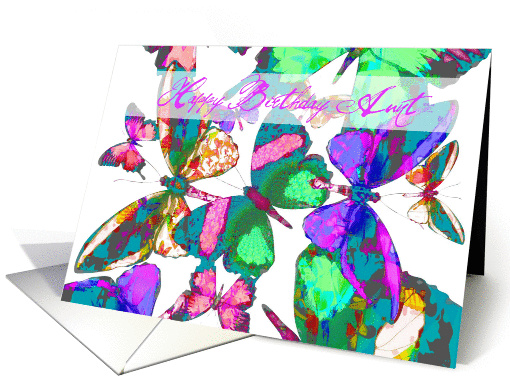 Happy Birthday Aunt, butterflies in flight of jewel colors!