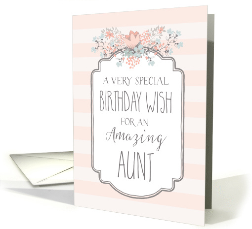Peach Floral Vintage Stripes Aunt Birthday Card