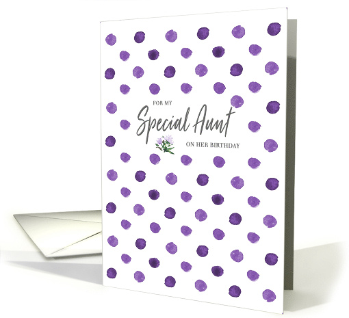 Purple dots and a small lavender flower combine with modern typography to create a fresh and feminine birthday card for the special aunt in your life.