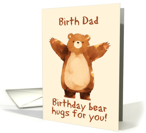 | Artist Notes: | A sweet cartoon bear with it's arms spread wide for an incoming birthday bear hug on a beige background with the text "birth dad birthday bear hugs for you!" A lovely card to send to your wonderful birth dad for their special day. |