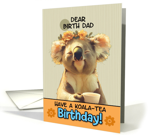 Title: Birth Dad Happy Birthday Blissful Koala Bear with Cup of Tea