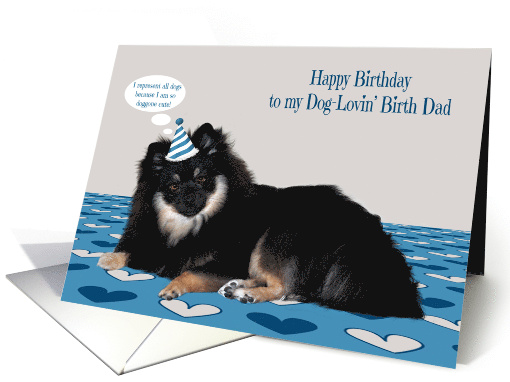 | Title: | Birthday to Birth Dad, dog lover, Pomerian wearing a birthday hat |
