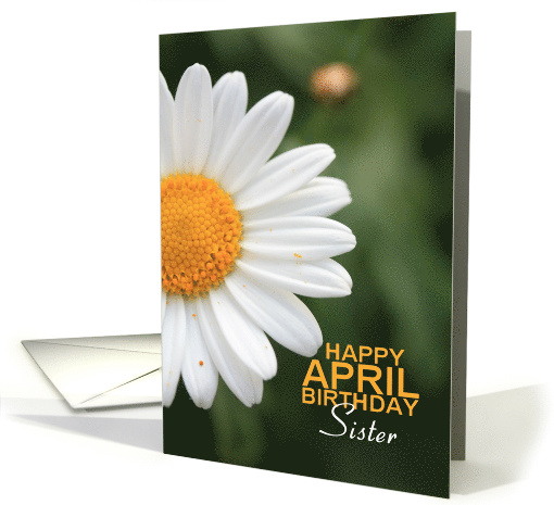 Artist Notes: | Sister Happy April Birthday Daisy April Birth Month Flower Created from an original Studio Porto Sabbia photo. This Daisy April Birthday card is available for various (family) relations. |