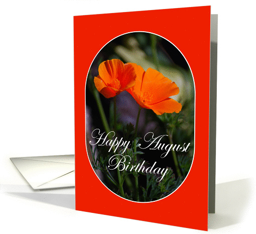 | Inside: | Happy August Birthday. May you enjoy success and happiness, signified by the beautiful poppy, the August birth month flower. |