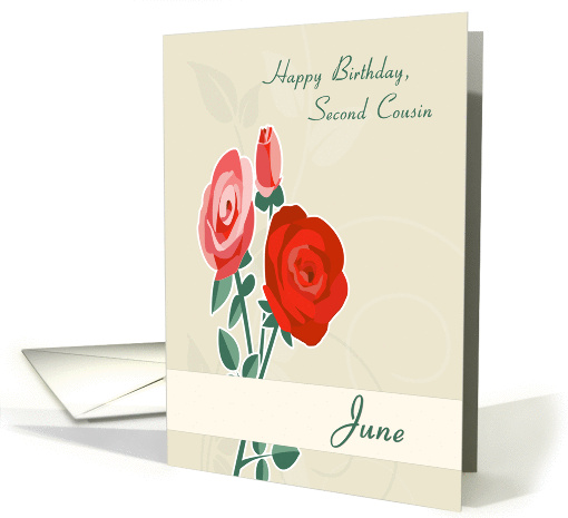 Artist Notes: | Give your second cousin this elegant June’s birth flower birthday card. Red roses with swirls in the background make a perfect card for their special occasion. Design © 2015 Julia Bryant. |