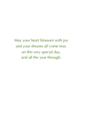 | Inside: | May your heart blossom with joy and your dreams all come true, on this very special day, and all the year through. |