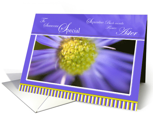 | Inside: | Ignite the spirit of the Aster. May this special day be filled with wondrous birthday wishes. Happy Birthday |