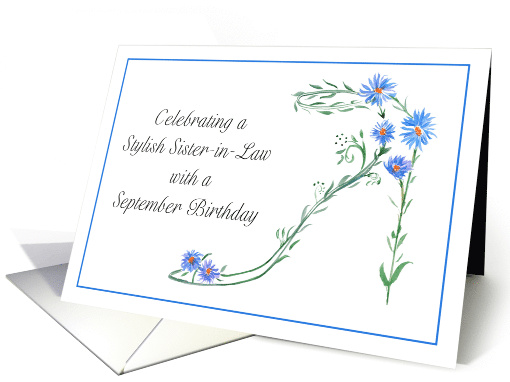 | Inside: | Wishing you a day of beauty and flair. A September birthday with style to spare. Wise in your words, fabulous from the start always choosing heels that set you apart. Happy Birthday, Sister-in-Law! |