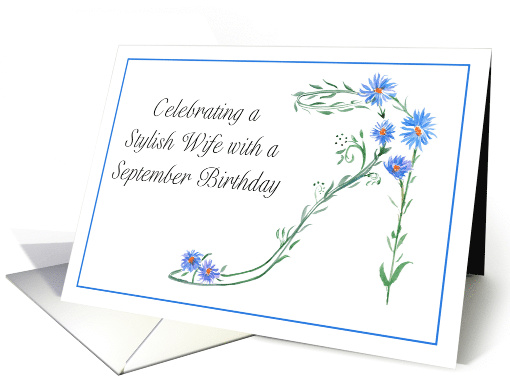 | Title: | Happy September Birthday Wife Blue Aster Flower High Heel |