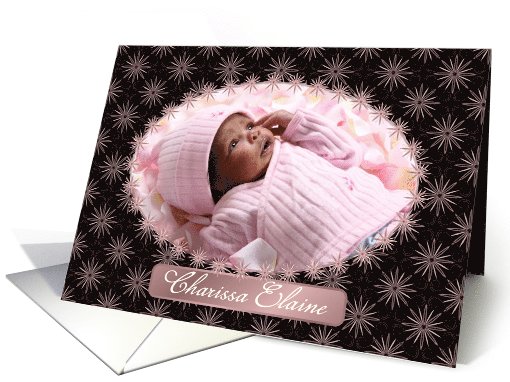 | Title: | Photo Card, Baby Girl Announcement Brown and Pink Floral Design |