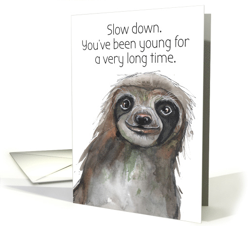 | Artist Notes: | This sloth was painted in ink and digitally enhanced. The caption and has been added to create a unique and cute card for anyone's birthday. Especially those who like Sloths! |